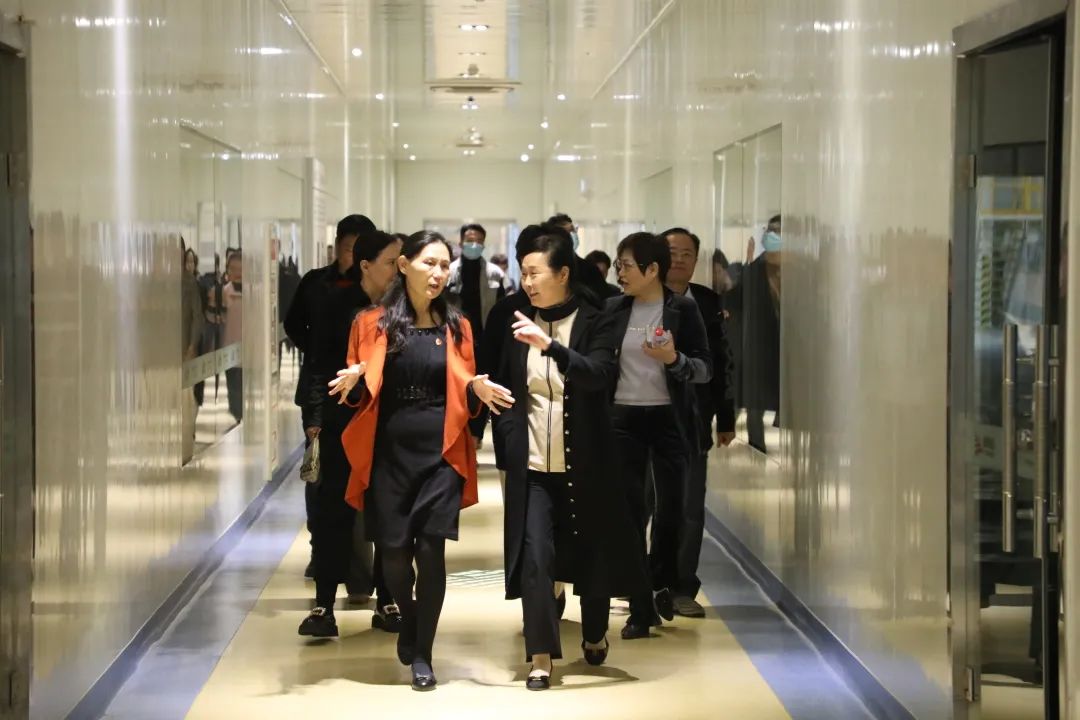 闫董事长陪同朱丽珍主席一行观看企业宣传片,并通过参观走廊参观三、四、五号生产线,向各位领导和嘉宾系统介绍银金达发展历程、生产设备、创新成果等,朱主席和各位女企业家对银金达优美的厂区环境、现代化的生产设备、优秀的企业文化、卓越的创新成果表示热诚赞许。