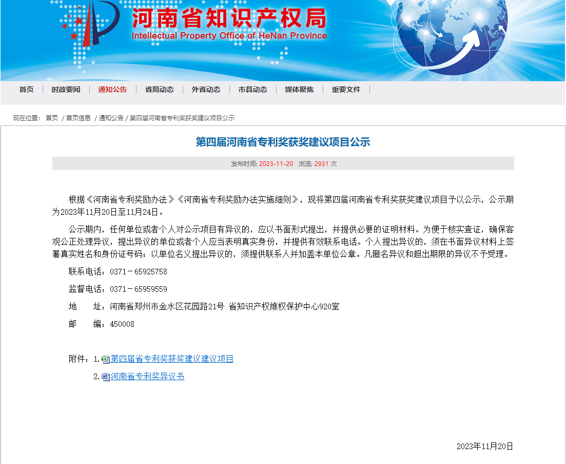 河南省专利奖2017年由河南省政府设立,该奖项是奖励对促进本省经济和社会发展具有突出贡献的专利,是我省知识产权领域展示先进、表彰先进、激励先进的重要奖项,是激励自主创新、激发人才活力、营造良好创新环境的一项重要举措。