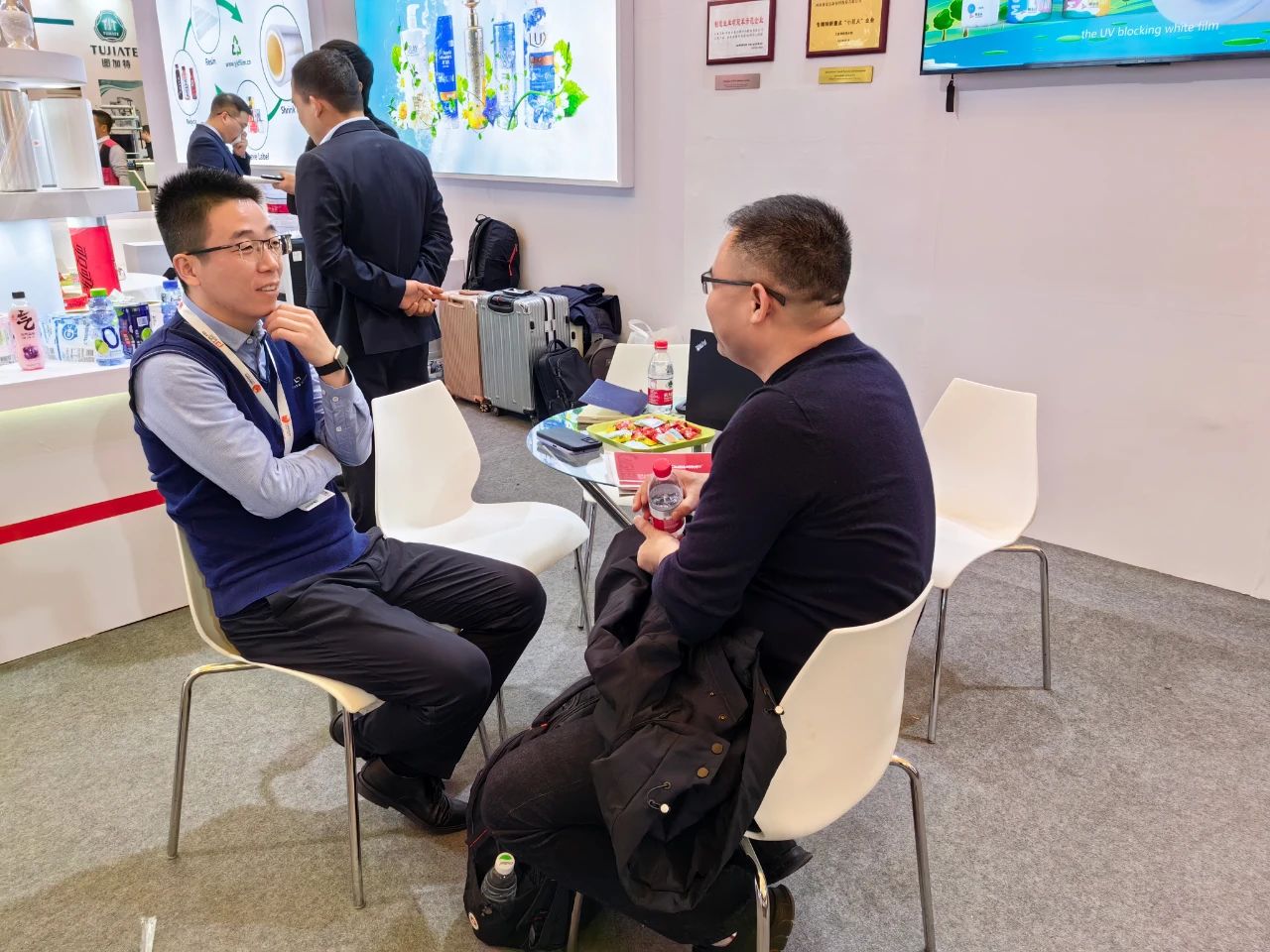 银金达展台位于E2馆J55展位,展区设计简洁大方、突出PETG产业链主题,在重点推介薄膜业务板块的同时、设置了PETG切片及银金达彩印产品展示专区,全面展示银金达PETG产业链风采。展会期间,除国内市场的众多新老客户外,银金达与土耳其、墨西哥、意大利等国家的老客户,以及来自泰国、巴基斯坦、以色列、也门、俄罗斯、白俄罗斯、多米尼加、哥伦比亚等国家的新客户进行了友好洽谈,充分交流市场信息,深入沟通业务合作细节。