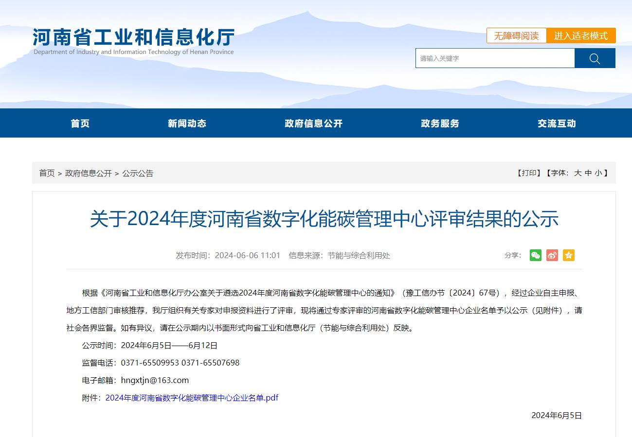 喜讯!银金达新材料入选河南省数字化能碳管理中心