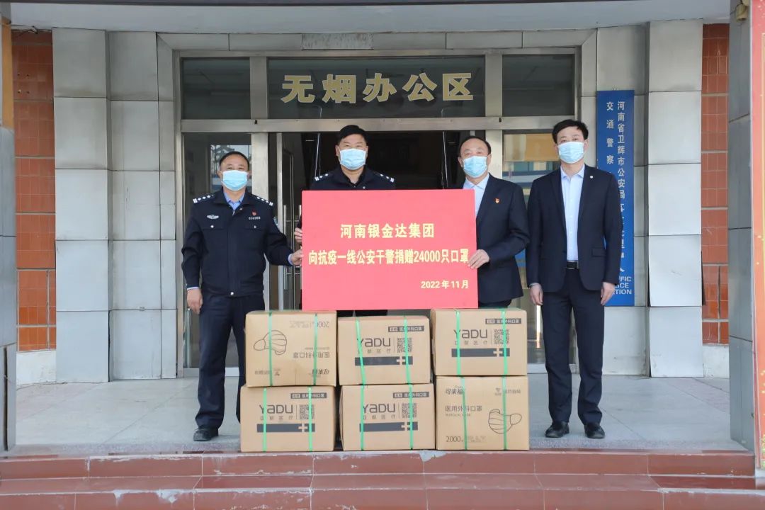 在当前疫情严峻复杂的形势下,公安干警不惧风险英勇战斗在疫防一线,为守护一方平安和抗击疫情作出了重要贡献。银金达集团党委书记、董事长闫银凤为助力公安干警抗击疫情,委托集团党委副书记、工会主席杨凤瑞和彩印公司副总经理刘广斌到卫辉市公安局、卫辉市交警大队慰问,并捐献防疫口罩2.4万只,表达银金达干部职工的热诚问候。