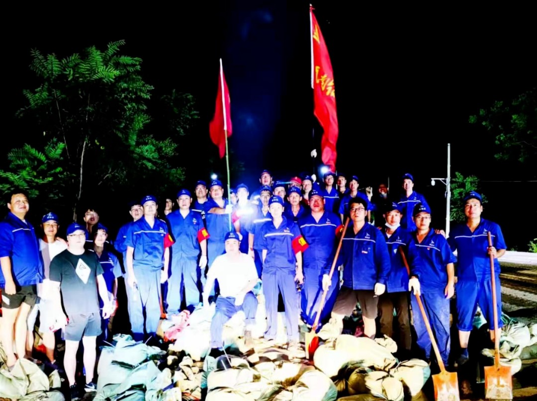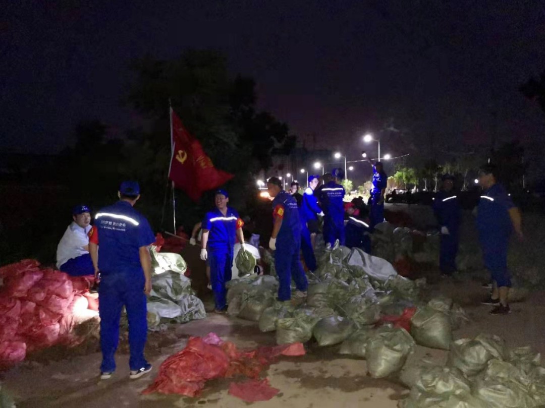 2021年7月28日下午2时,银金达抗洪救灾志愿者奔赴七里铺至卫共桥筑坝现场,参加修筑拦洪堤坝,一直战斗到深夜九时。